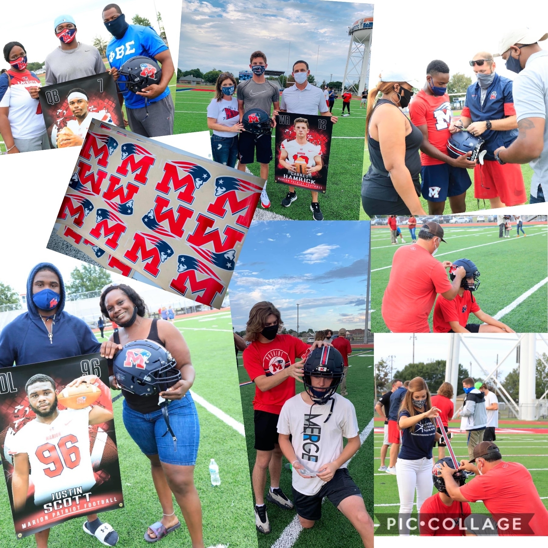 ❤️Family and friends came together on Patriot Field to help with decals on the football players helmets and also to present the Senior Football and Ceerleaders with their banners! Great night all around!🔴🔵⚪️ Go Pats Go! 🔴🔵⚪️We love our Patriot Family! 🏈 📣❤️